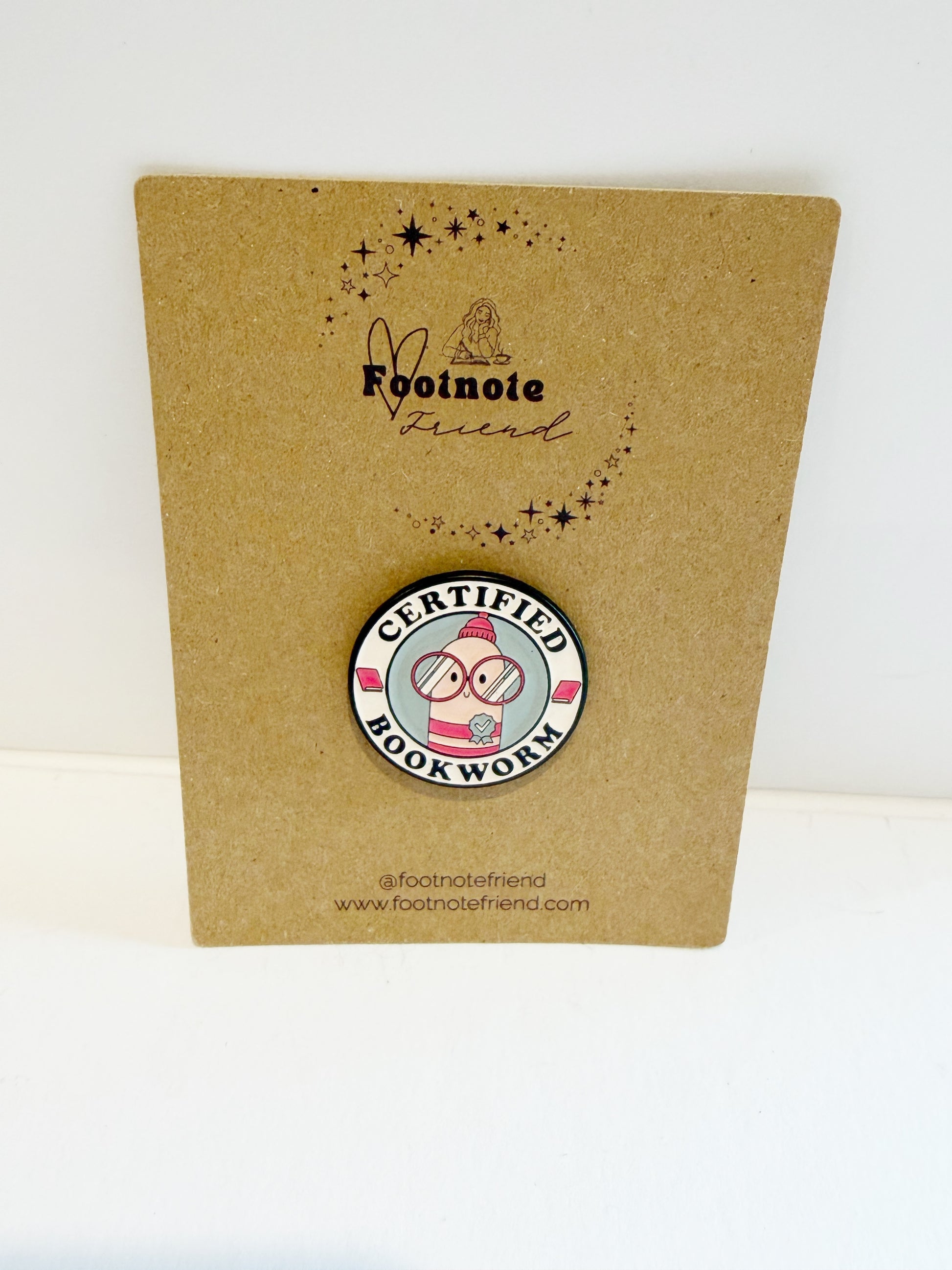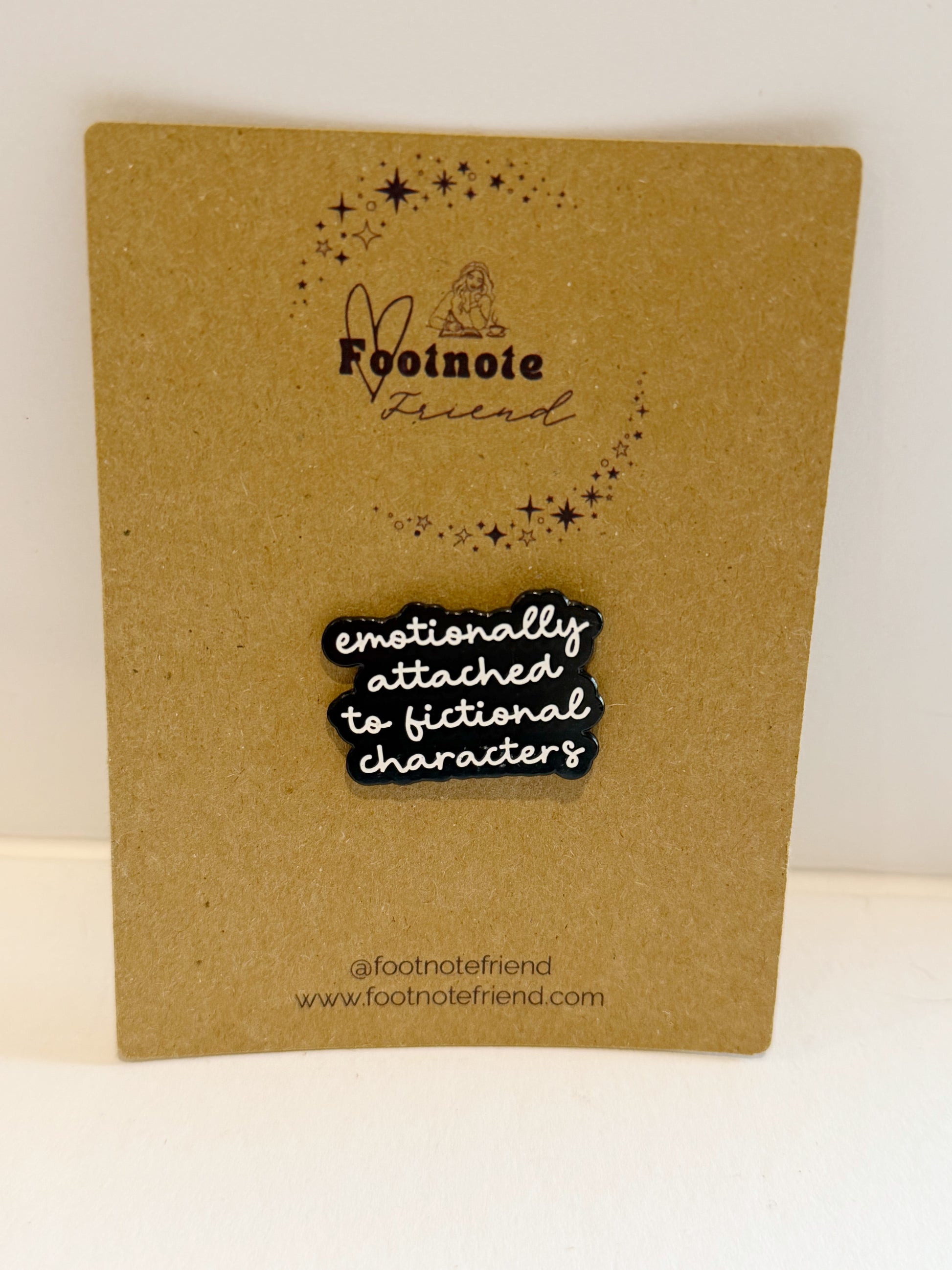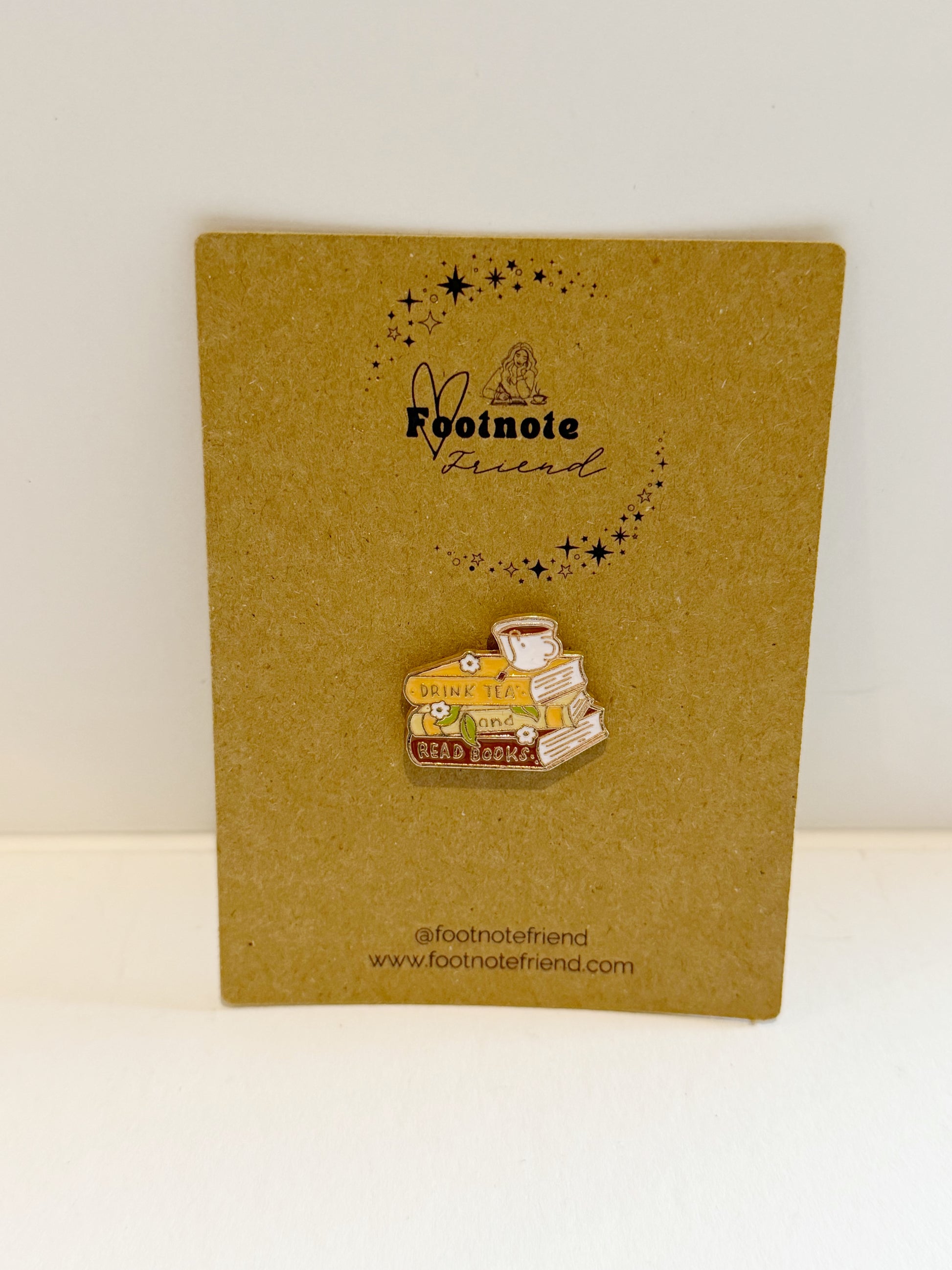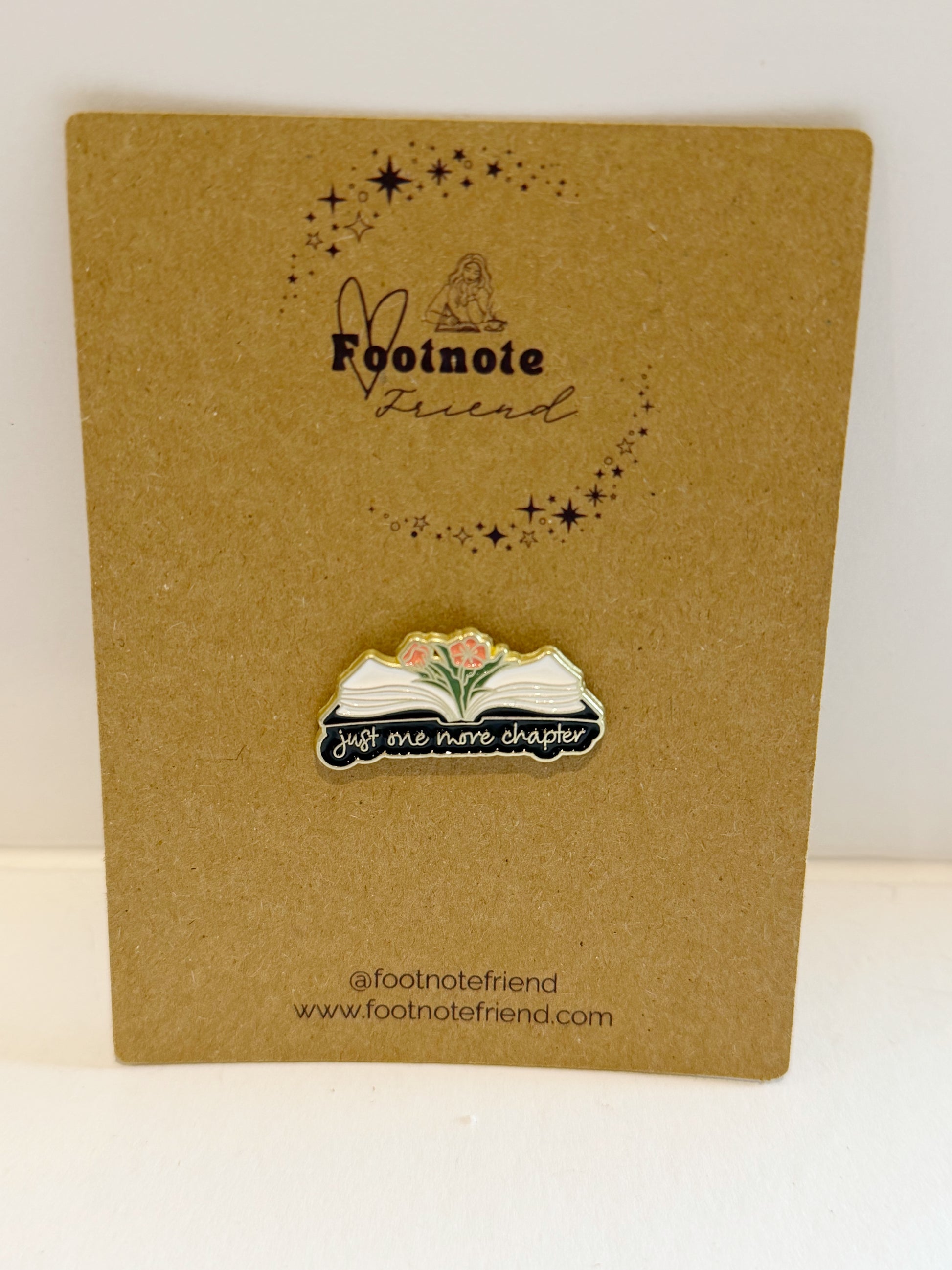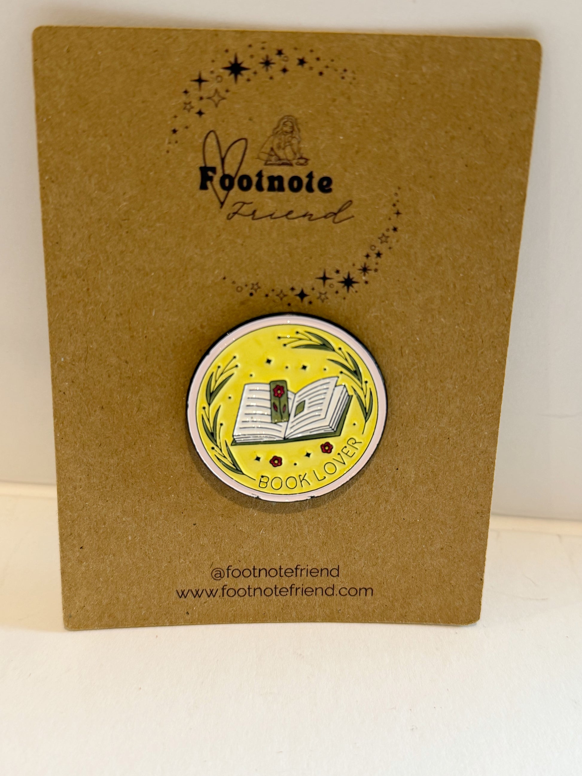 Each pin is carefully selected to align with the Footnote Friend aesthetic and love of reading.