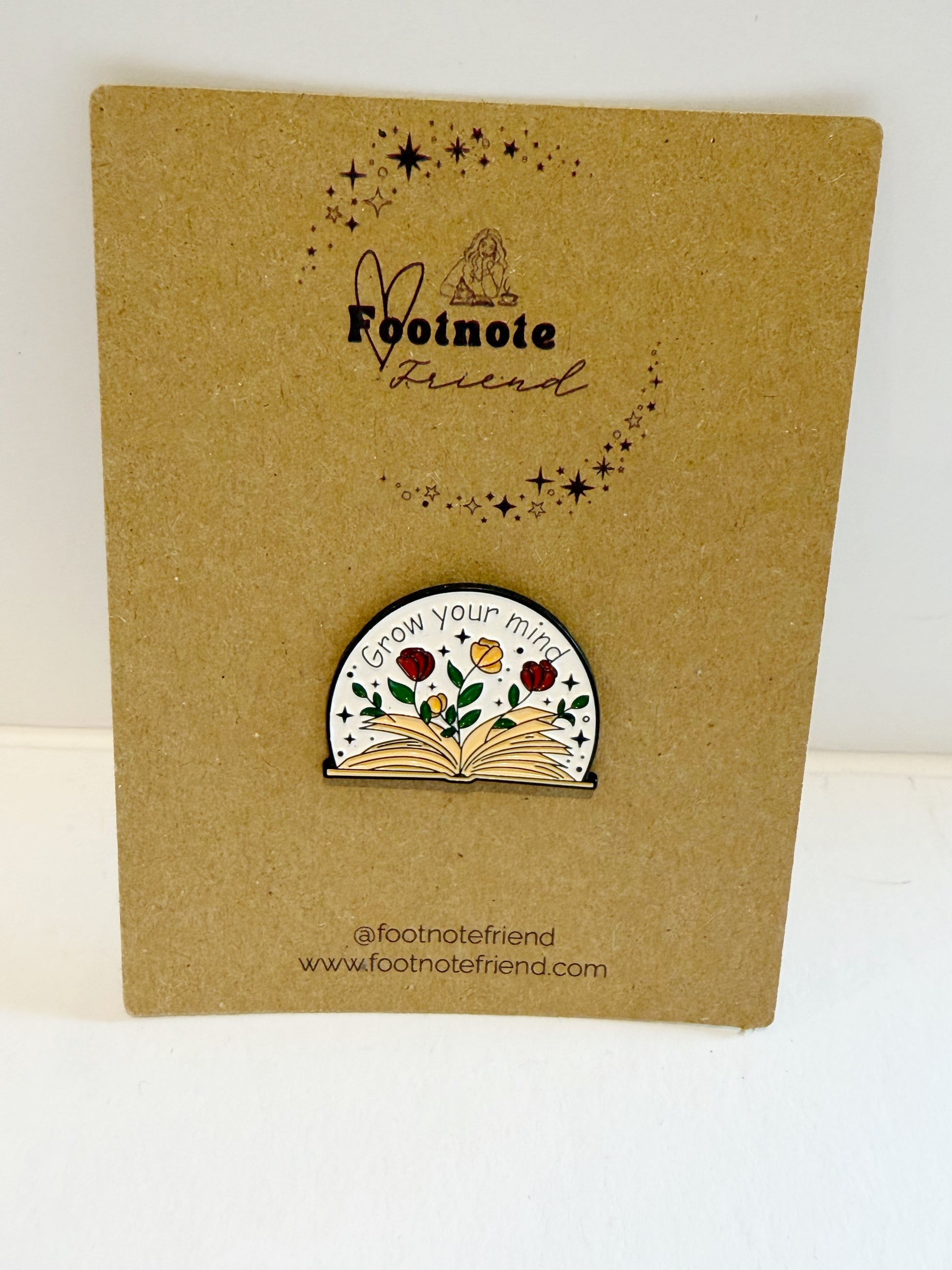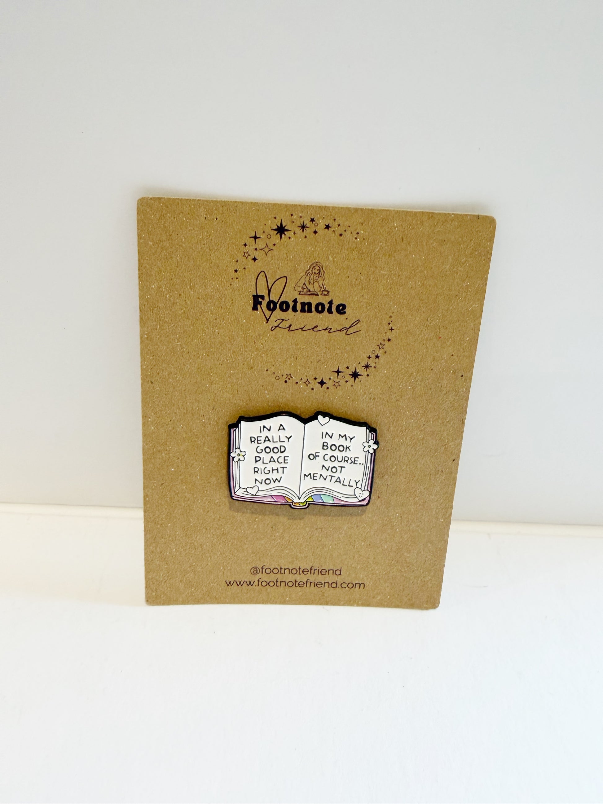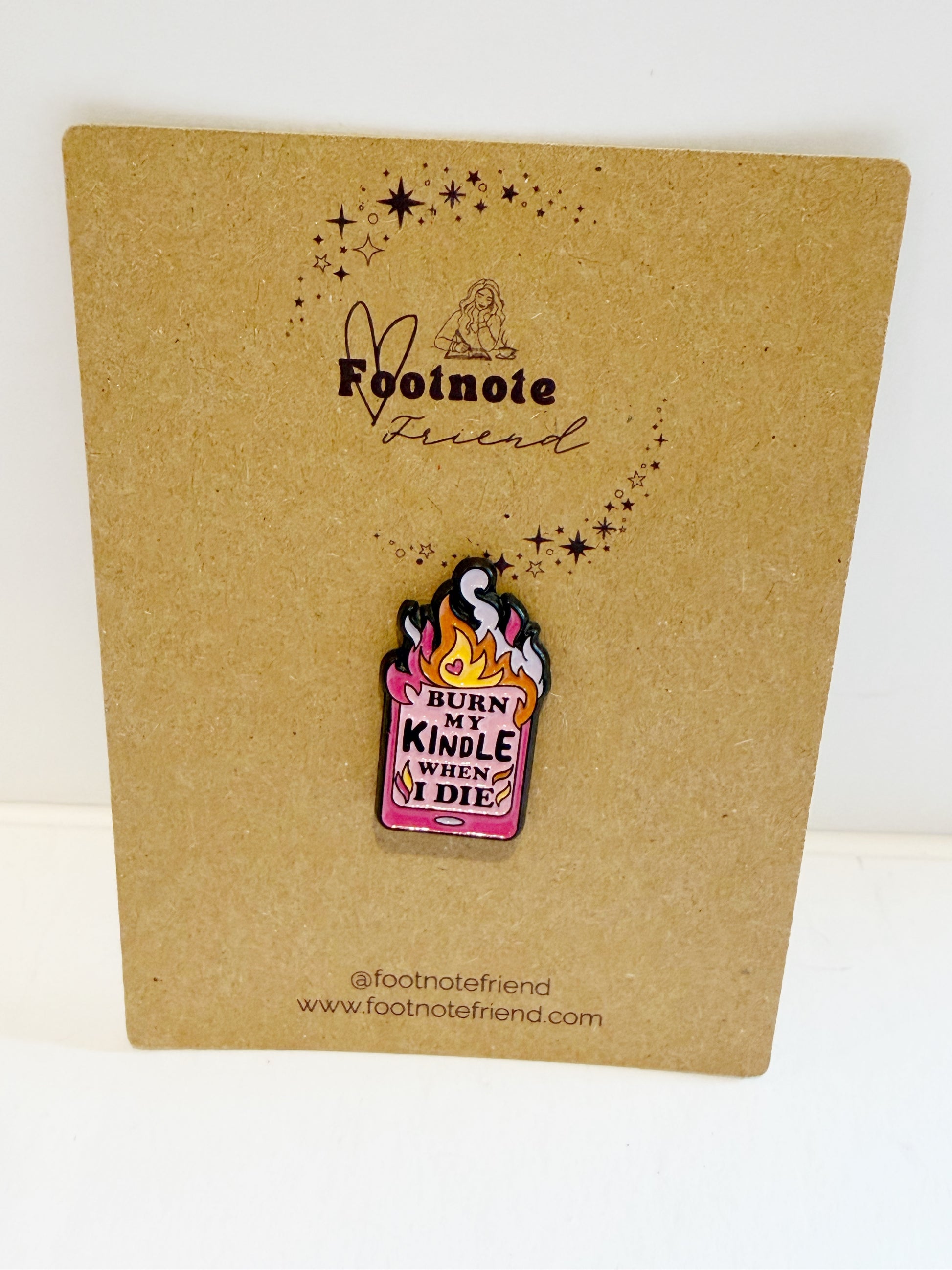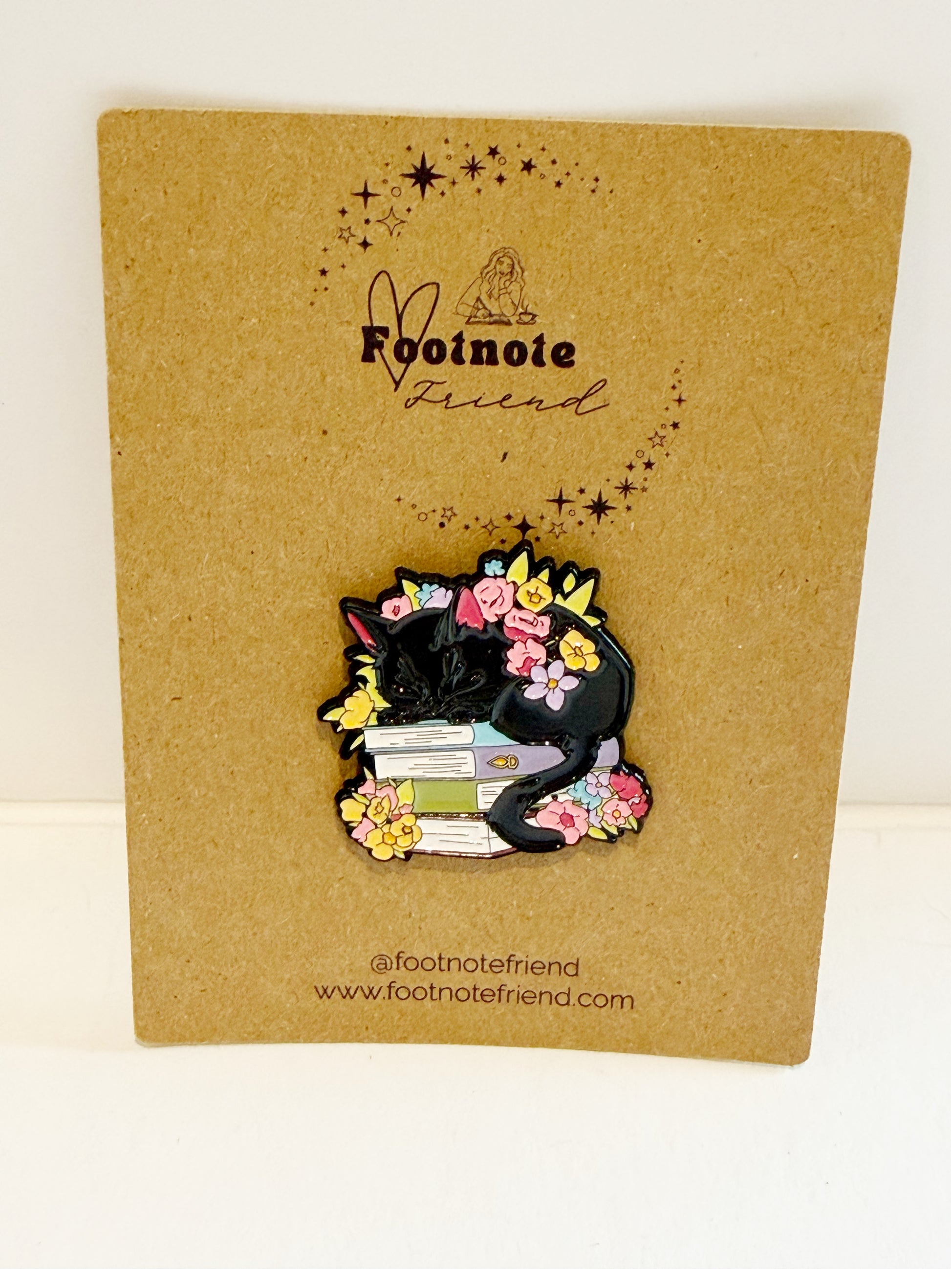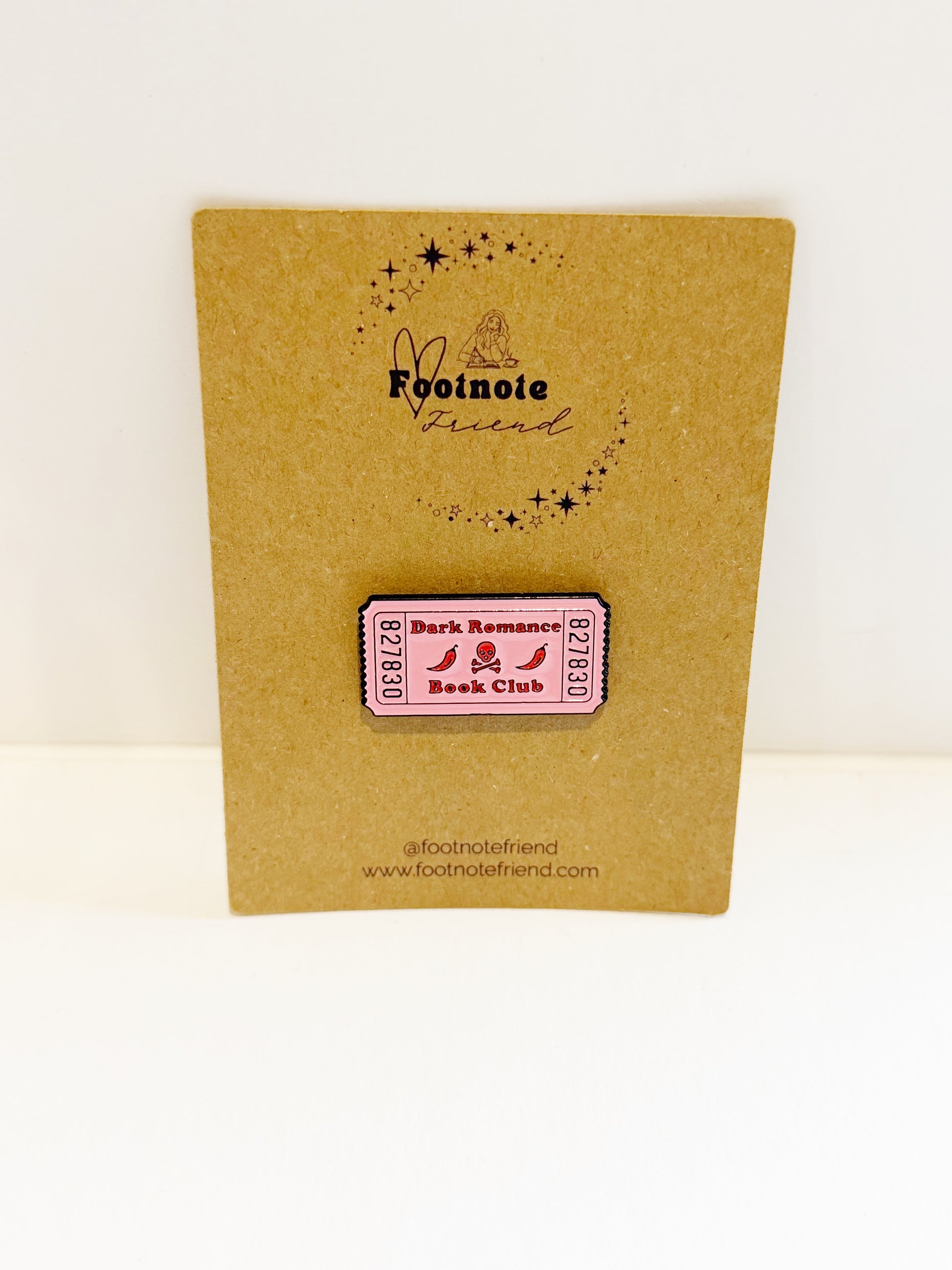 Each pin is carefully selected to align with the Footnote Friend aesthetic and love of reading.